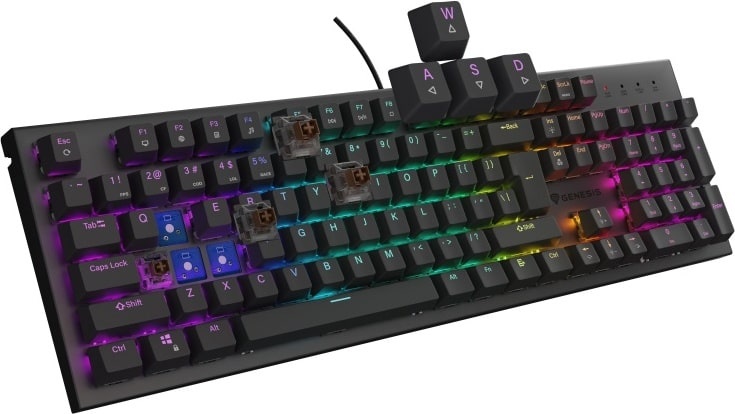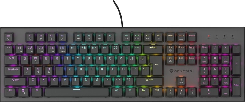 De Genesis Thor 303-sleutels hebben een levensduur van maximaal 50 miljoen klikken. Het toetsmechanisme, gecombineerd met de "Double Injection" techniek en solide aluminium behuizing, zorgt ervoor dat het toetsenbord jarenlang intact blijft. Je kunt ook rekenen op veel extra functies, zoals N-Key Rollover (volledige Anti-Ghosting), de mogelijkheid om de Windows-toetsen te vergrendelen en zelfs geavanceerde RGB Prismo Effect-lichteffecten.