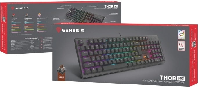 Maak kennis met de Genesis Thor 303 op volledige grootte - een mechanisch Hot Swap-toetsenbord met verwisselbare Outemu Brown-schakelaars met extreem snelle respons, oorverdovende klik en een levensduur van maximaal 50 miljoen klikken. De stevige aluminium behuizing gecombineerd met volledige RGB-achtergrondverlichting en PRISMO-effect garanderen duurzaamheid en comfort, zelfs tijdens de langste sessies.